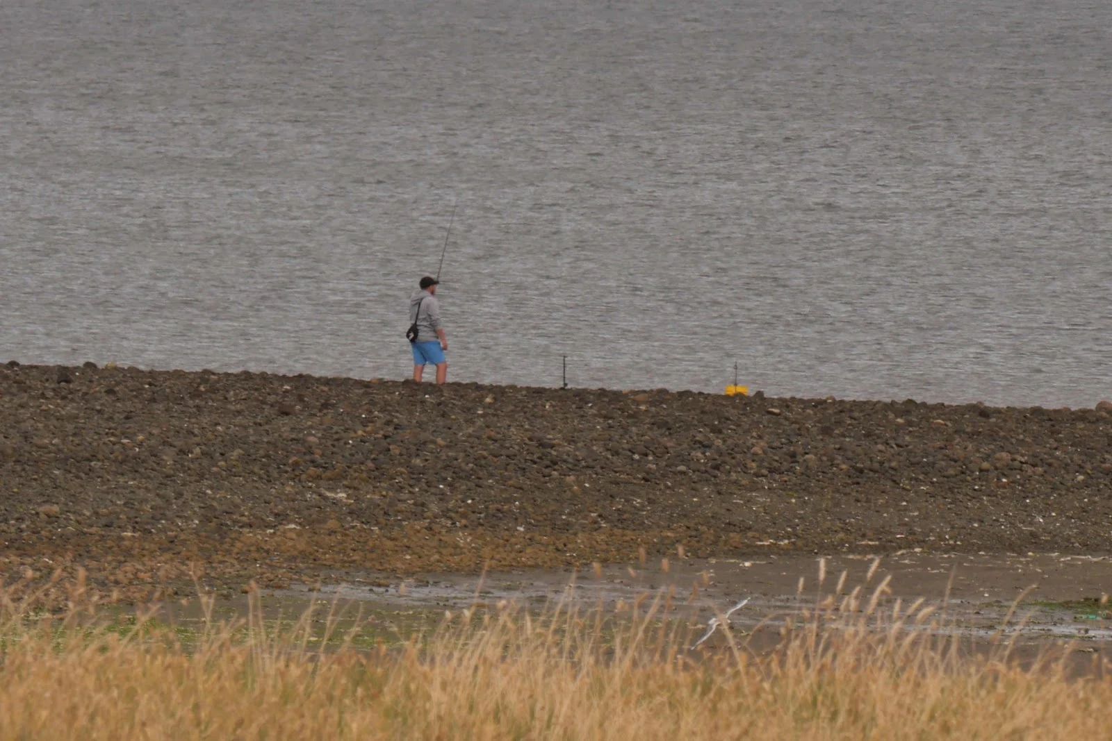We are on a spit of sand between broad expanses of farmland and there is an estuary behind us.