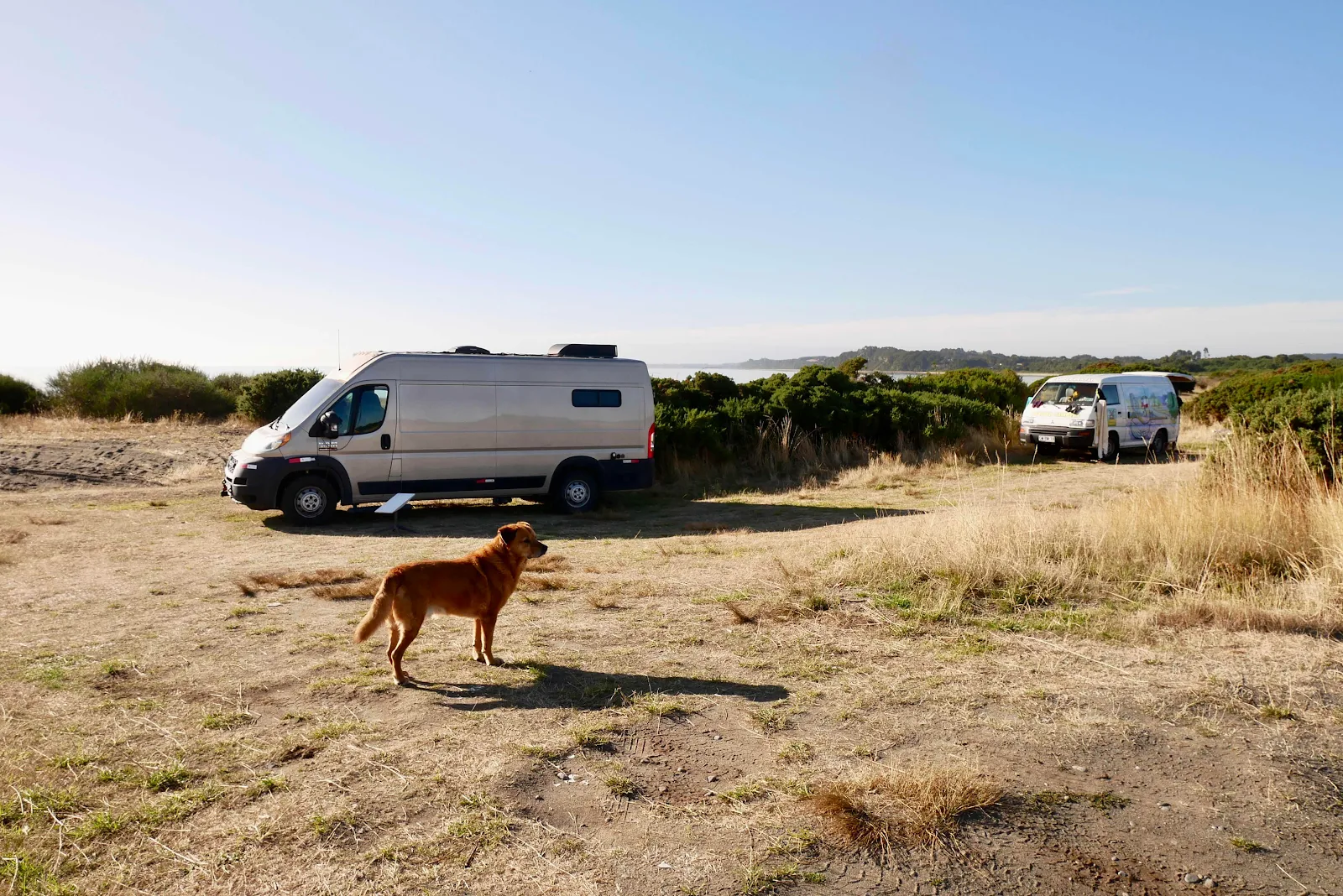 Putting our van here would make the main entrance to the beach more open for weekend visitors and put us in a book surrounded by prickly horse bushes.