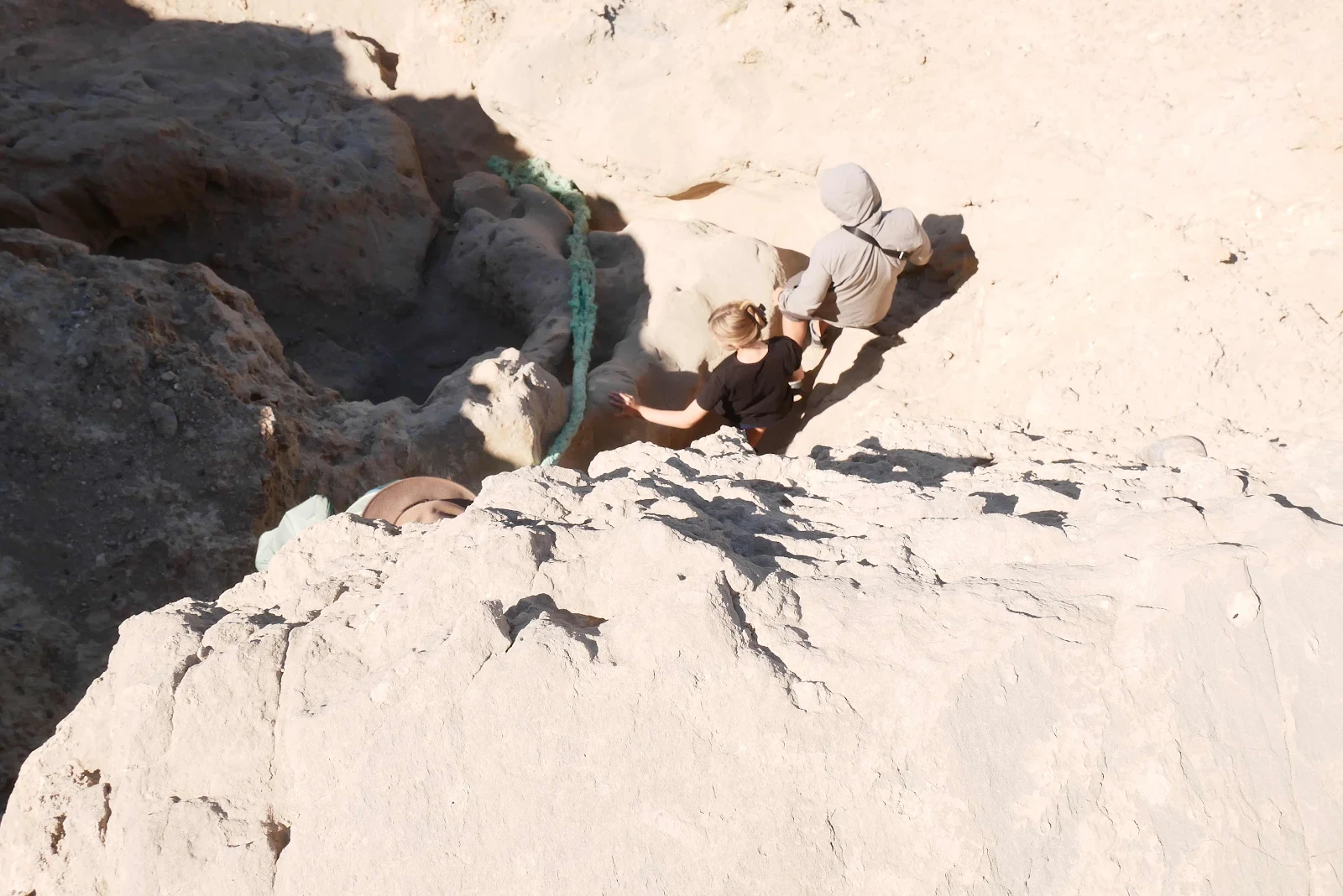 The Americans and Canadians decided to go down the cliff to the beach. Nut jobs.