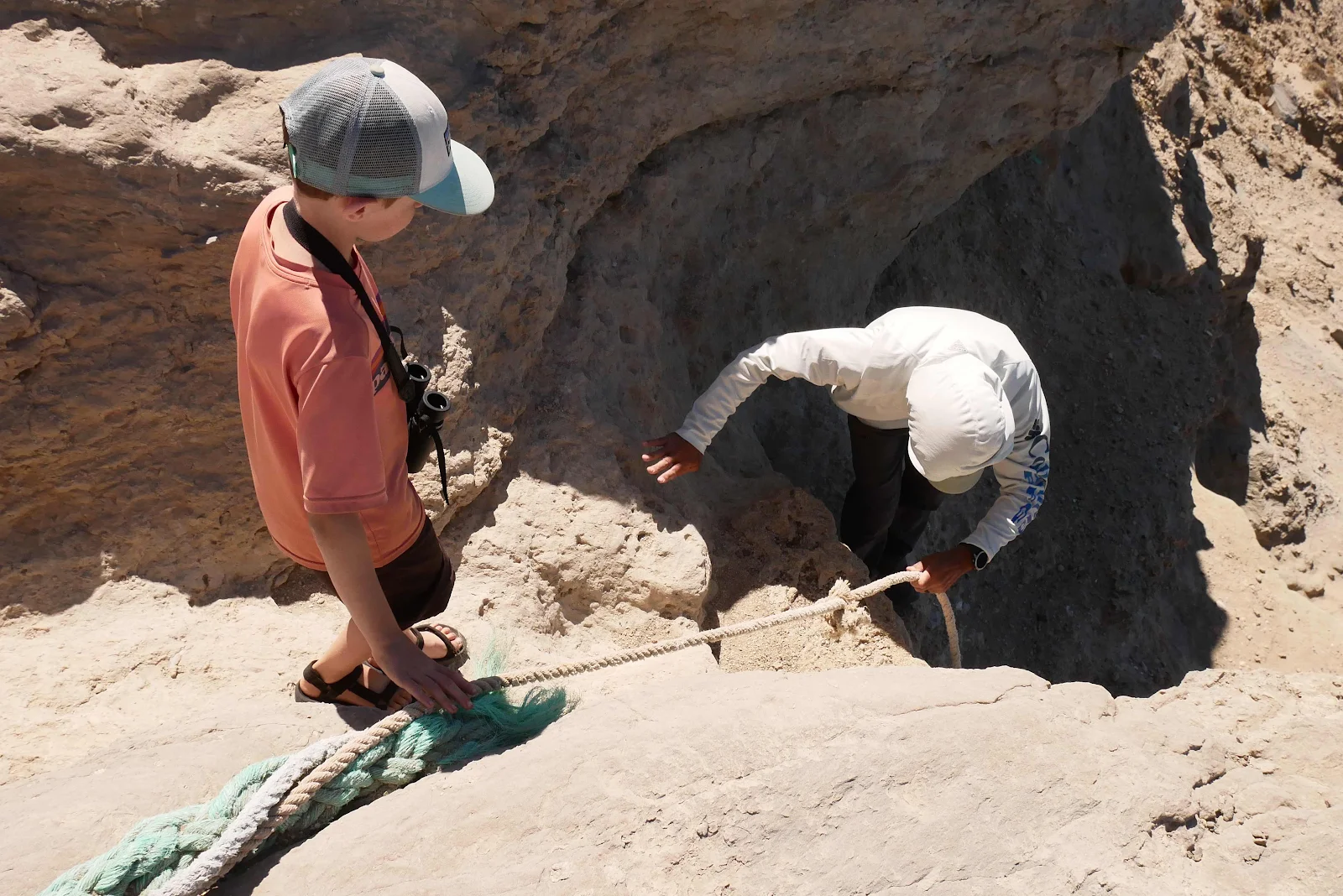 They made it. Later they also made it back up, more importantly. That’s Keri in sandals.