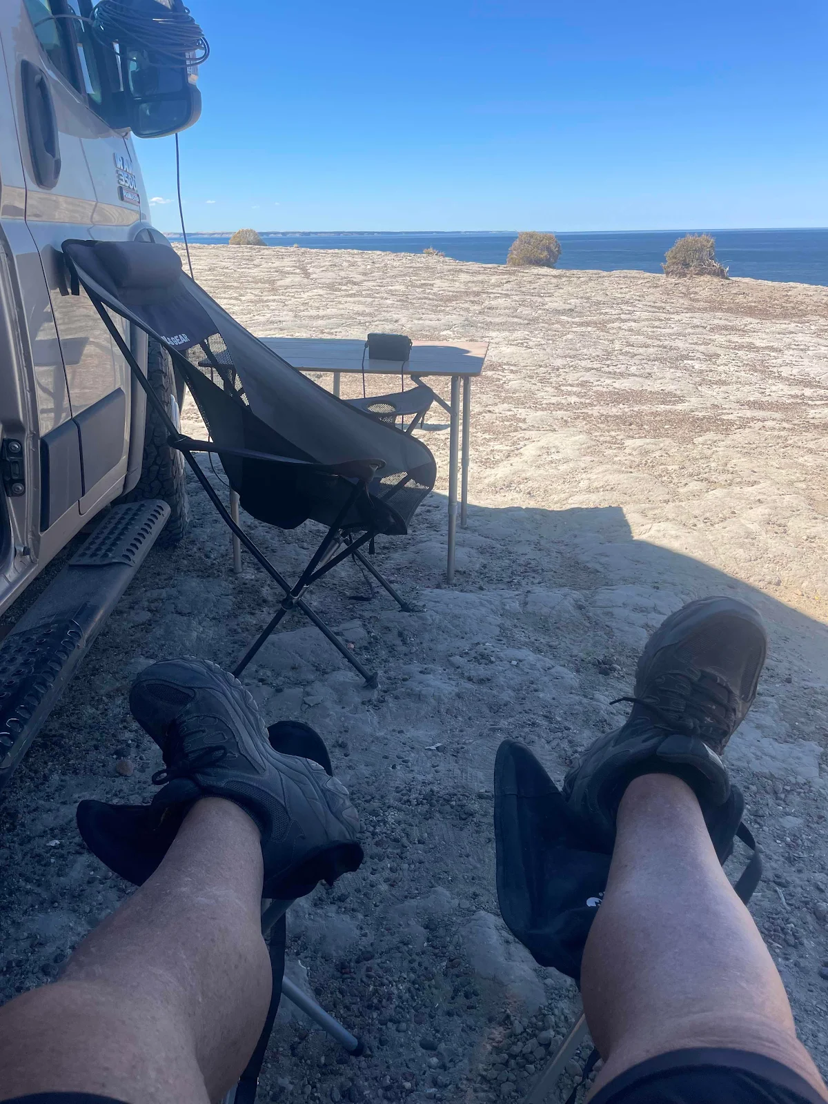 One of the fishermen asked us to keep an eye on their car as one of their friends recently had his wheels stolen while he was on the beach fishing. Nice so now we really wanted to leave in the morning.