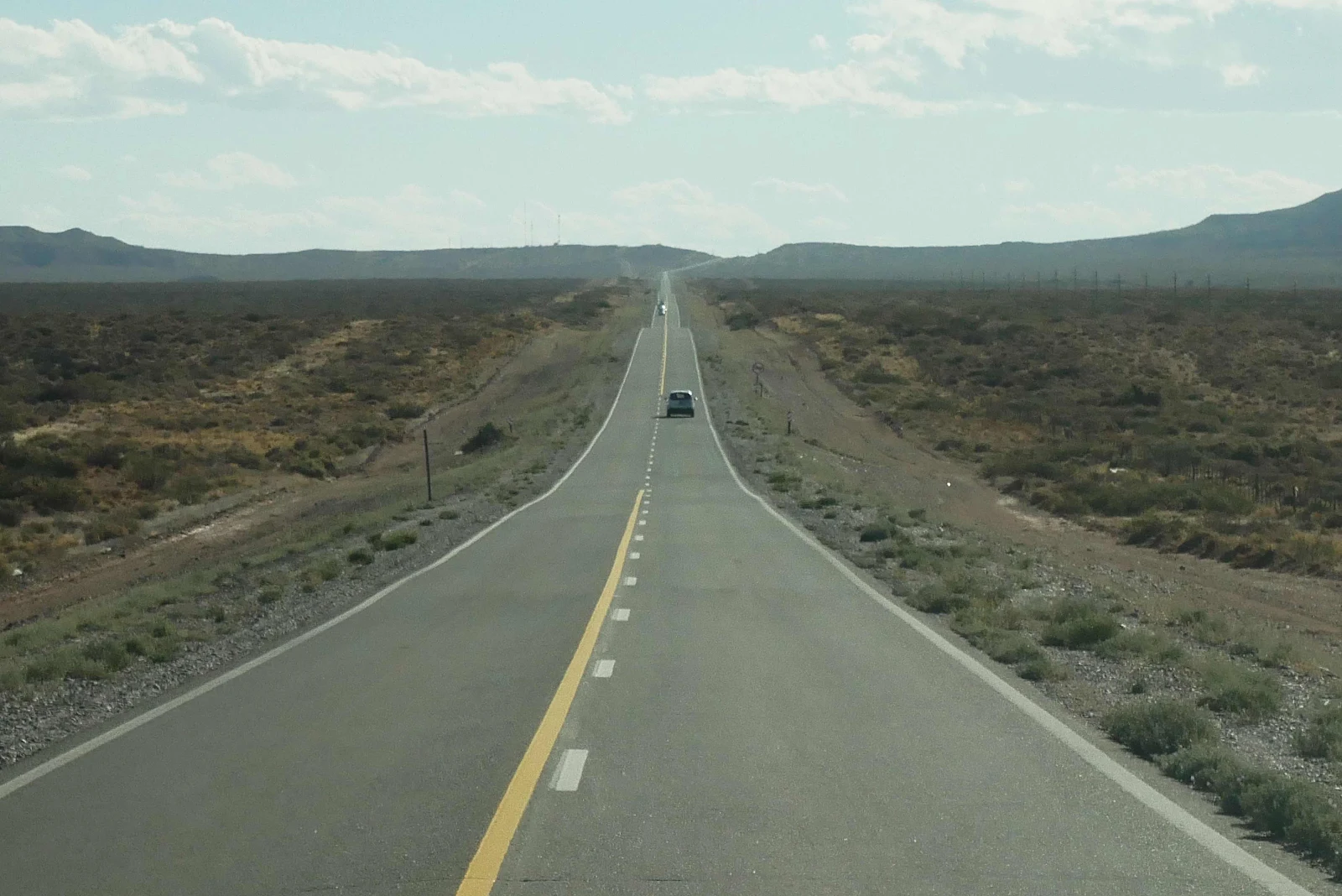 The solid red line is the approximate course of the Rio Negro infamous in history but helpful nowadays offering a slightly less boring drive across Argentina.