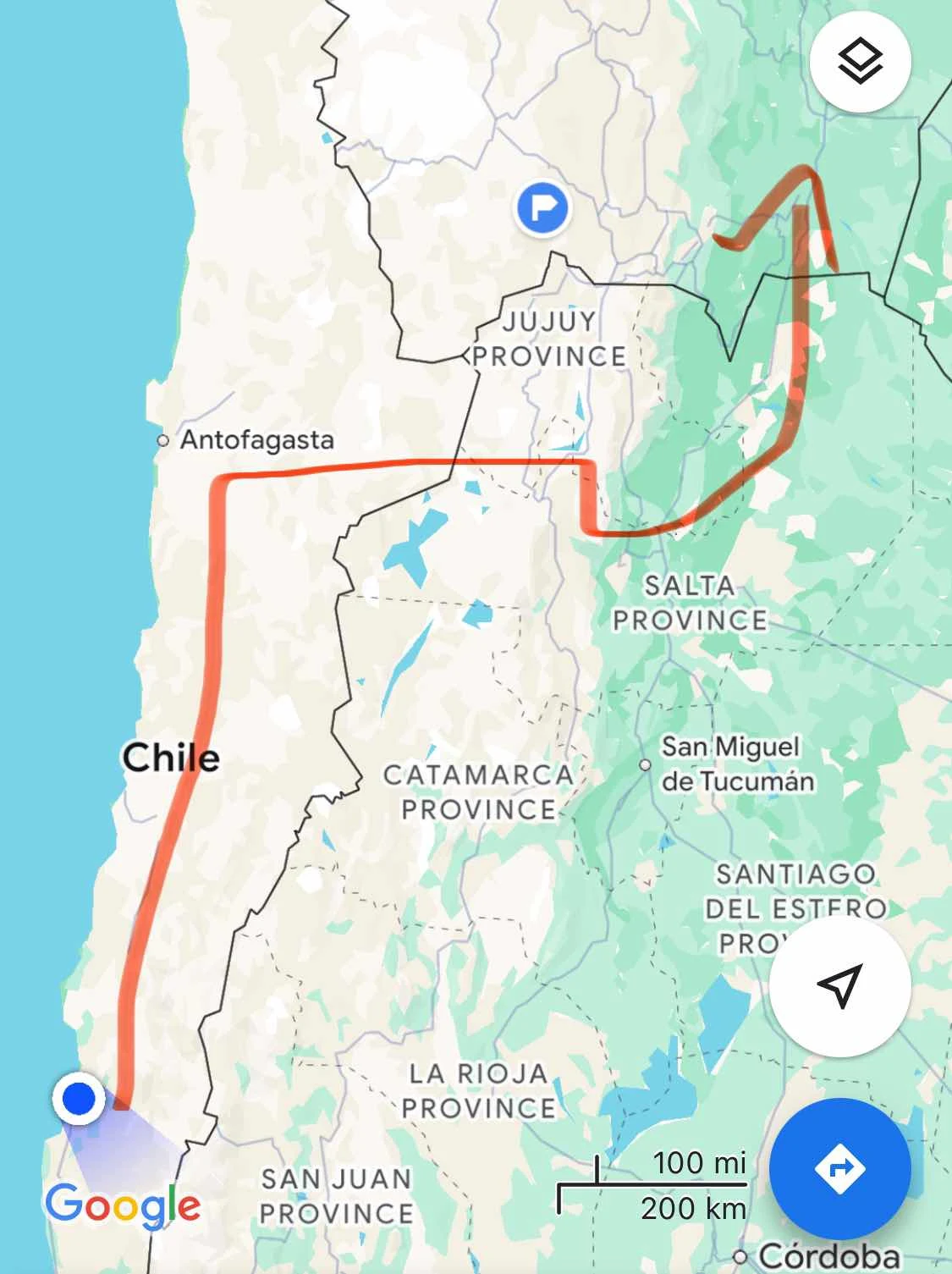 Our route more or less via Antofagasta, San Pedro de Atacama and the Jama Pass (15,900 feet on asphalt) into Argentina. Then from Salta east and north into Bolivia near the border with Paraguay. Our friends plan to enter Bolivia from Paraguay and together we travel the country for a couple of weeks. Bolivia is a mess so the company will be welcome.
