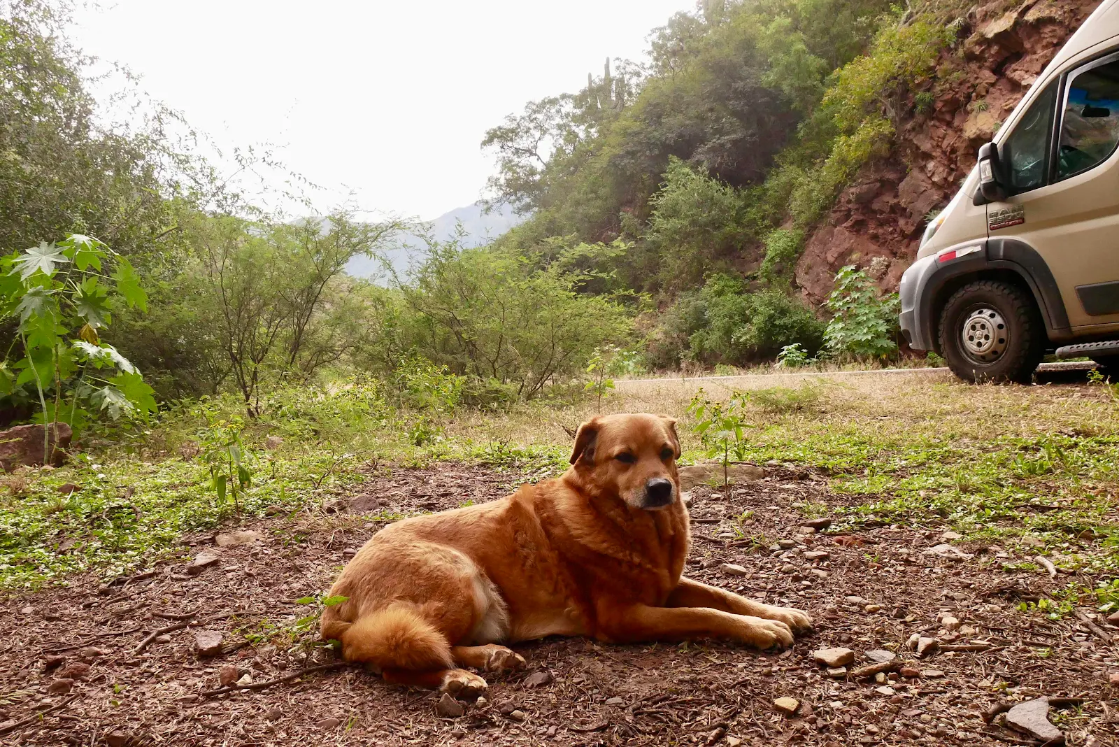 We left the campground at Yala north of San Salvador at 8:30 which wasn’t too shabby considering it got light only an hour earlier. Rusty held things up a bit by declining to leap aboard GANNET2 with his usual vigor. The more half hearted he is the more he liked the camping spot he is forced to leave. El Refugio was full of long grass and the campground dogs totally submitted to his will and stayed away. But we had dog papers to get in the city.