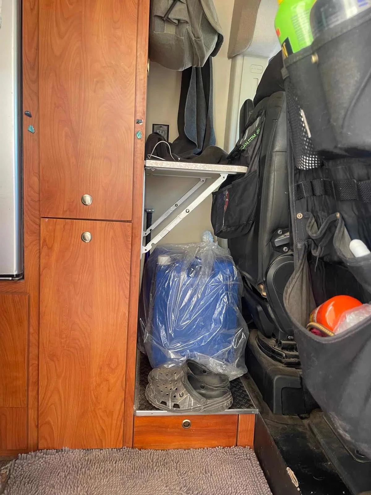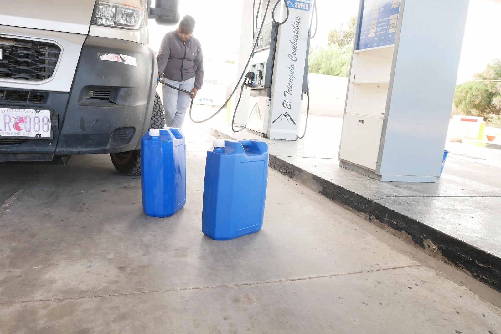 In the van we had those two jugs filled with regular gas and wrapped but not enough to eliminate all the smell. We both wanted them gone.