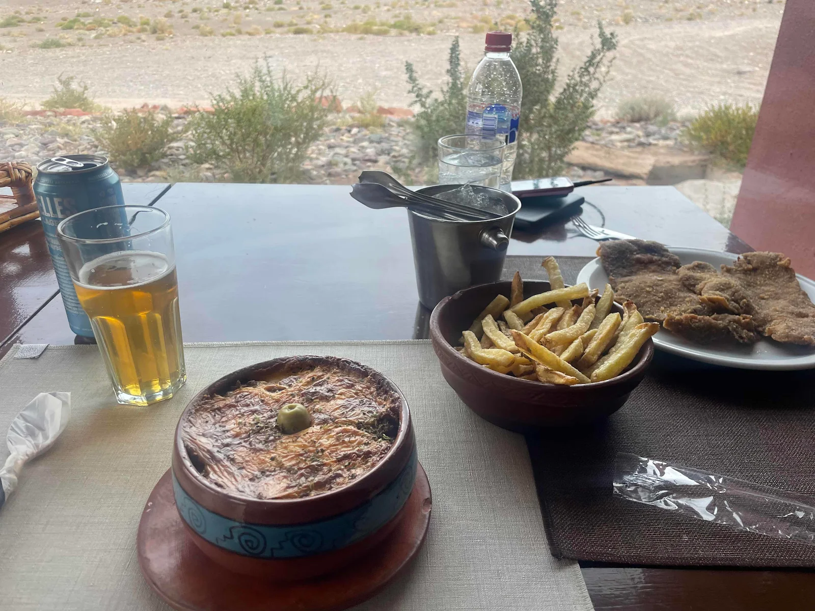 The funny looking pottery pot closest to me is the house specialty which they call “pastel de papas” which turned out to be shepherds pie and we liked it.