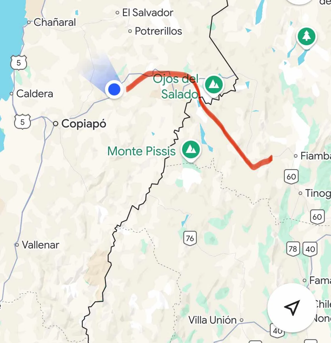 Just be warned: Paso San Francisco is all desert, all the time. And for us the good news was the road, Highway 60 in Argentina was all pavement 120 miles to the border. Highway 31 in Chile was another story.