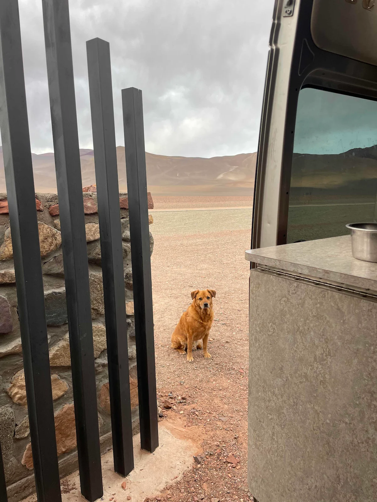 Konstantin gave us the jugs after he was denied entry to Bolivia where fuel is not easily available. The dog below belongs to the gas station in Fiambalá. The sign says enjoy and relax. I’m forced to believe the dog can read.