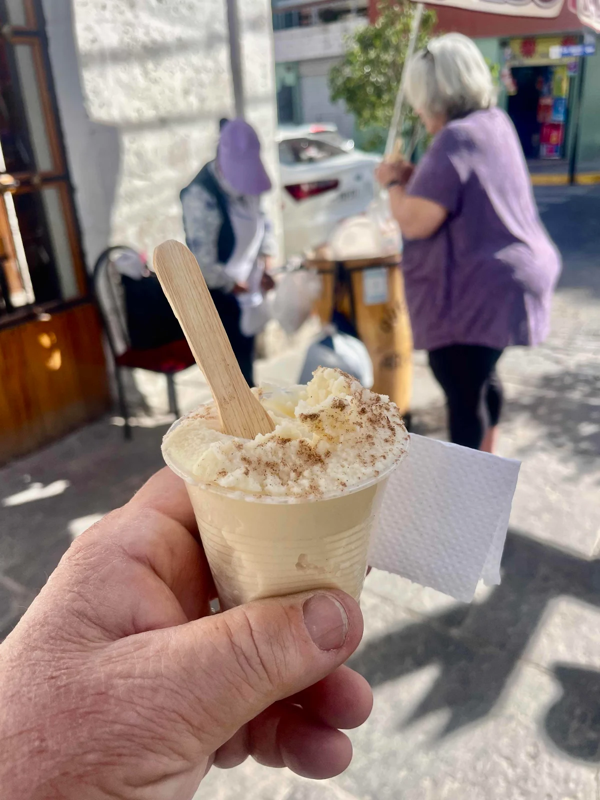 And cheese ice cream for dessert. It’s a local thing in this town so called because it has the color and consistency of cheese.