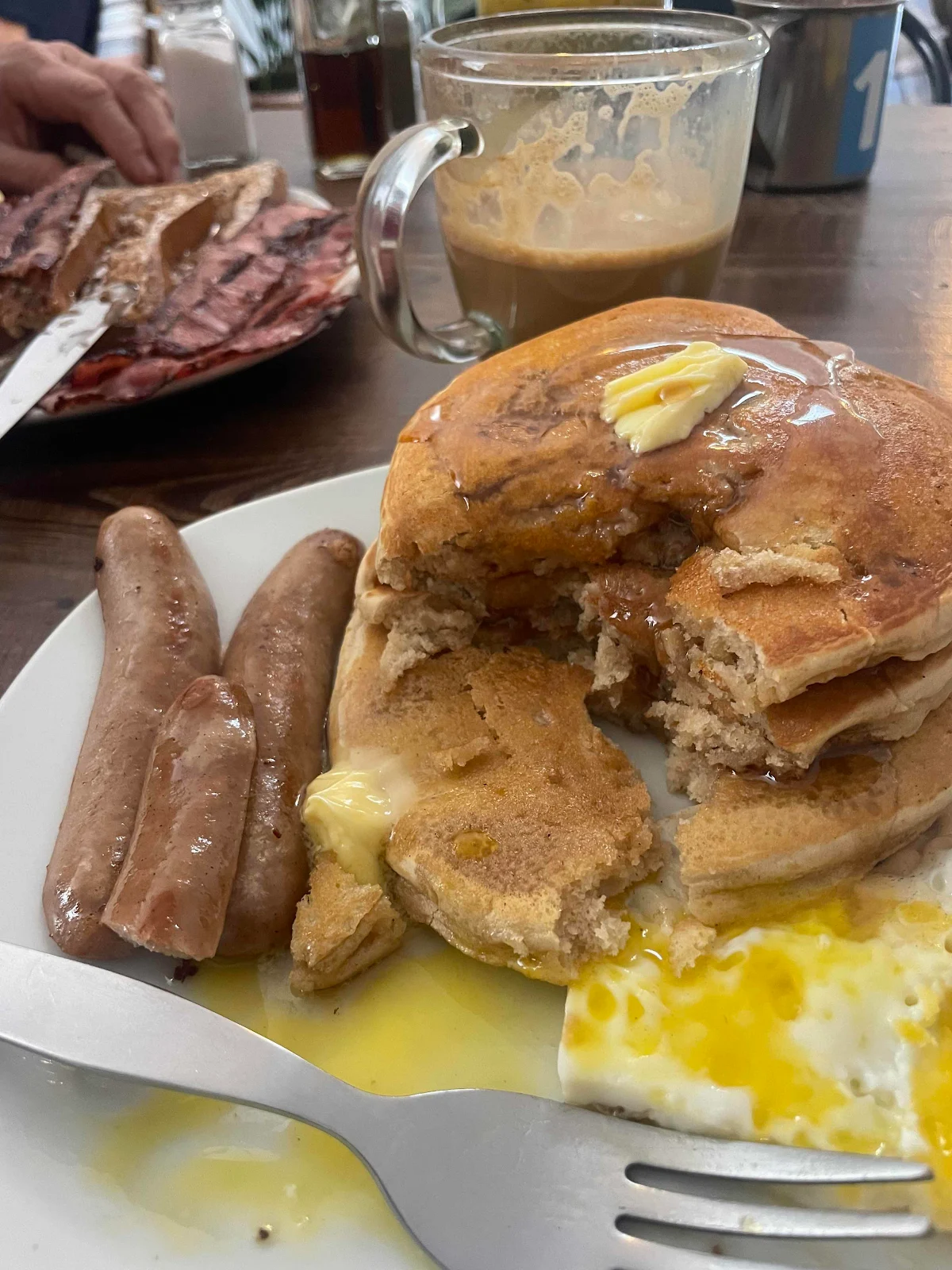 It’s been a while since I posted food pictures so here’s a ramble across a few tables in South America. Before Layne left for the States we had breakfast in town, an American breakfast like a grand slam at Denny’s. Layne had French toast and I had pancakes. In Peru. Weird huh?