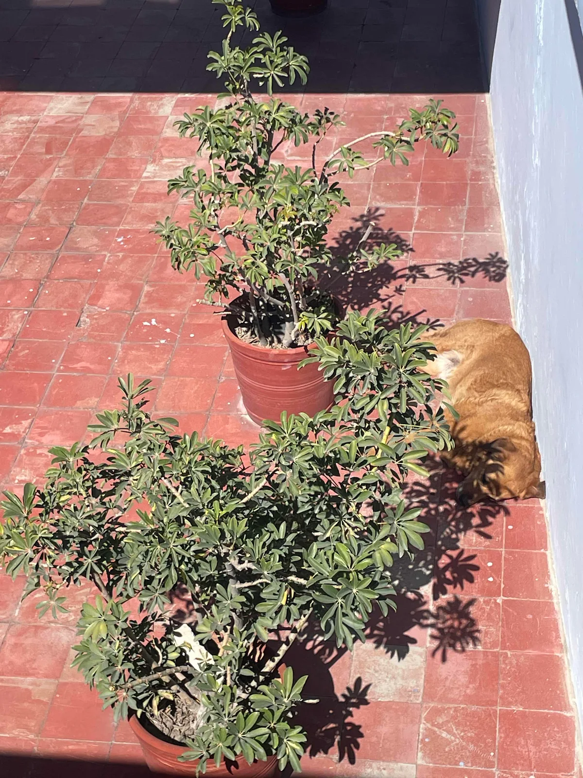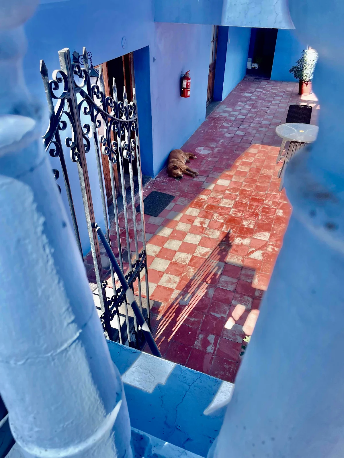 Rusty liked having a courtyard outside room 14. The staff pet him and play with him and even the house painters take time to greet him when they arrive each morning to refresh the hotel decor. He really liked having a room with a king sized bed, but it’s back to van life.